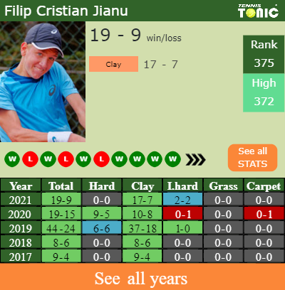 Filip has a 19-9 win-loss record in 2021, 17-7 on clay (See FULL STATS).