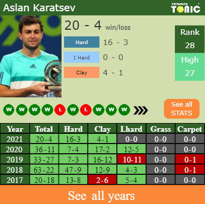 Karatsev has a 20-4 win-loss record in 2021, 4-1 on clay (See FULL STATS).