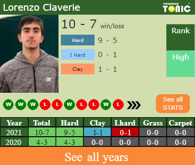 Claverie has a 10-7 win-loss record in 2021, 1-1 on clay (See FULL STATS).