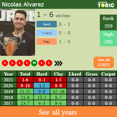 Nicolas has a 1-6 win-loss record in 2021, 0-1 on hard (See FULL STATS).