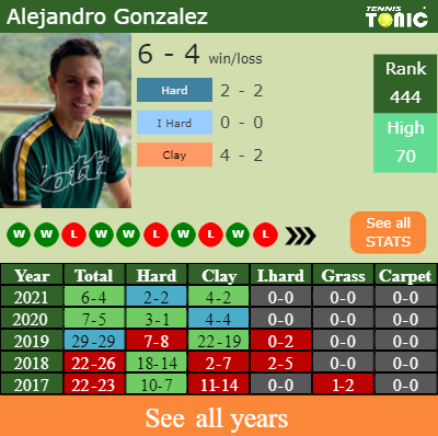 The Colombian has a 6-4 win-loss record in 2021, 2-2 on hard (See FULL STATS).