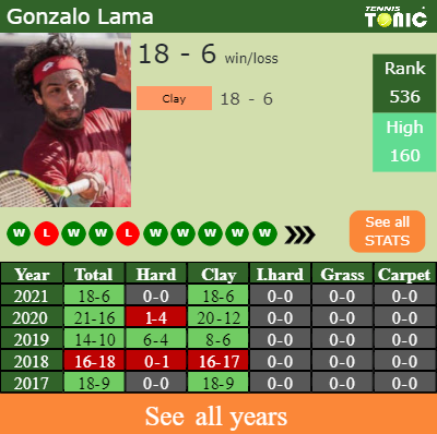 As per the initial odds, Gonzalo Lama is the pick to win this match.