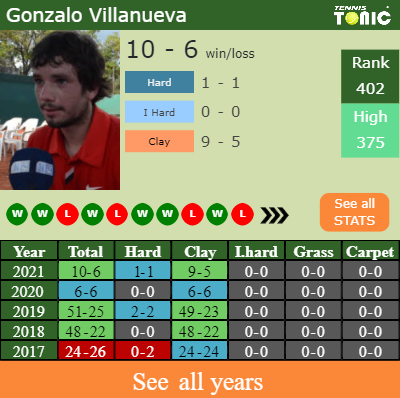 Gonzalo has a 10-6 win-loss record in 2021, 1-1 on hard (See FULL STATS).