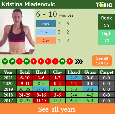 - Kristina MladenovicMladenovic – (0-0) – H2H and prediction