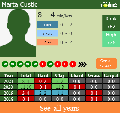 - Danka KovinicKovinic – Marta CusticCustic (0-0) – H2H and prediction