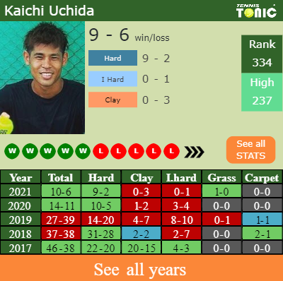 Kaichi has a 10-6 win-loss record in 2021, 9-2 on hard (See FULL STATS).