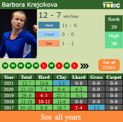 The Czech has a 12-7 win-loss record in 2021, 1-1 on clay (See FULL STATS).