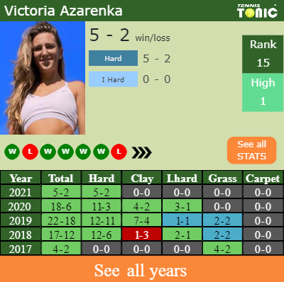 Talking about her overall career, Azarenka has an overall 549-205 record. She has a positive 119-53 record on clay.