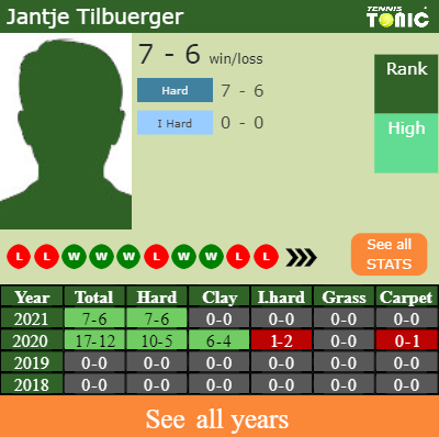 Jantje has a 7-6 win-loss record in 2021, 0-0 on clay (See FULL STATS).