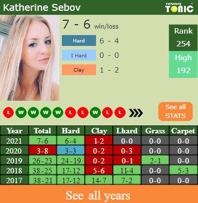 In terms of her career, Sebov has an overall 161-113 record. She has a positive 28-23 record on clay.