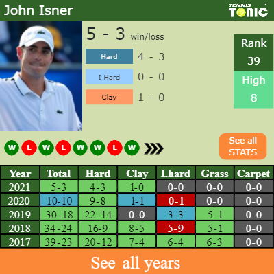 The American has a 5-3 win-loss record in 2021, 1-0 on clay (See FULL STATS).