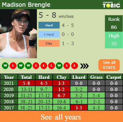 Talking about her overall career, Madison has an overall 483-378 record. She has a positive 103-98 record on clay.