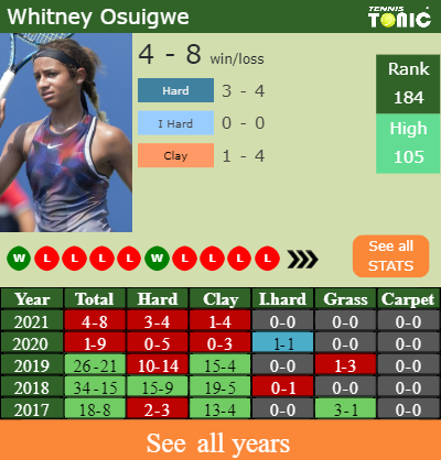 Whitney has a 4-8 win-loss record in 2021, 1-4 on clay (See FULL STATS).