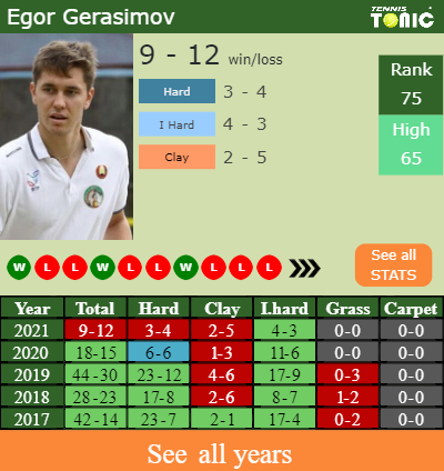 Talking about his overall career, Gerasimov has an overall 330-215 record. He has a flat 45-45 record on clay.