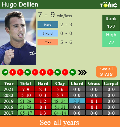 The Bolivian has a 7-9 win-loss record in 2021, 5-6 on clay (See FULL STATS).
