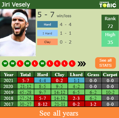 Talking about his overall career, Jiri has an overall 374-246 record. He has a positive 191-110 record on clay.