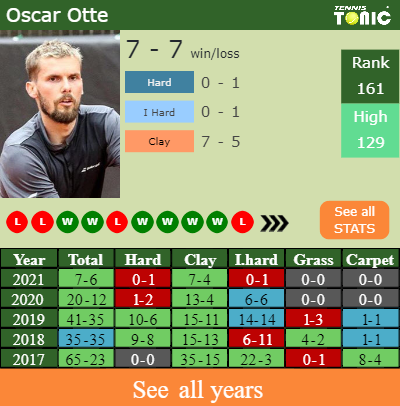 In terms of his career, Otte has an overall 299-175 record. He has a positive 160-79 record on clay.