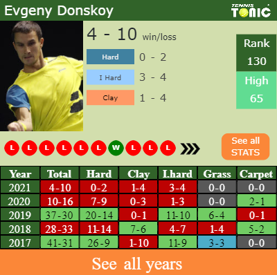 Donskoy has a 4-10 win-loss record in 2021, 1-4 on clay (See FULL STATS).