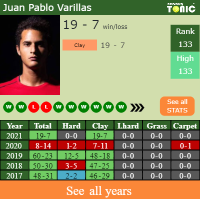 The Peruvian has a 19-7 win-loss record in 2021, 19-7 on clay (See FULL STATS).