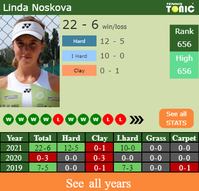 Noskova has a 22-6 win-loss record in 2021, 0-1 on clay (See FULL STATS).