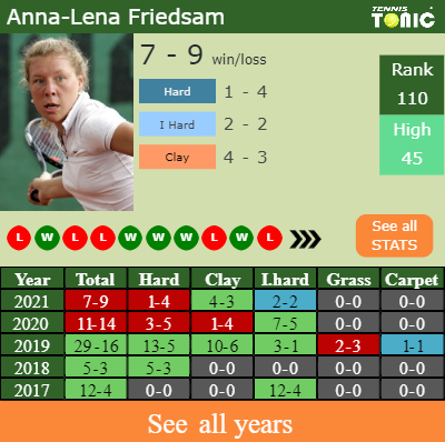 Friedsam has a 7-9 win-loss record in 2021, 4-3 on clay (See FULL STATS).