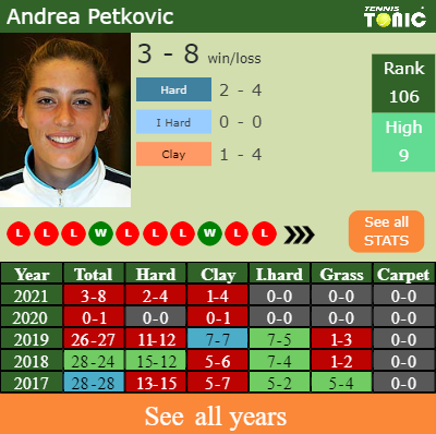 Talking about her overall career, Andrea has an overall 423-306 record. She has a positive 151-83 record on clay.