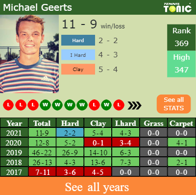 Geerts has an aggregate 11-9 win-loss record in 2021, 5-4 on clay (See FULL STATS).