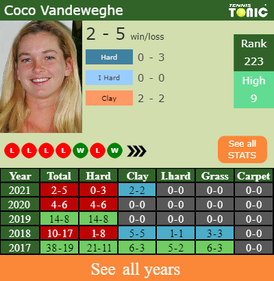 - Coco VandewegheVandeweghe – Anastasia GasanovaGasanova (0-0) – H2H and prediction