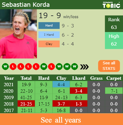 The American has an overall 19-9 win-loss record in 2021, 4-4 on clay (See FULL STATS).