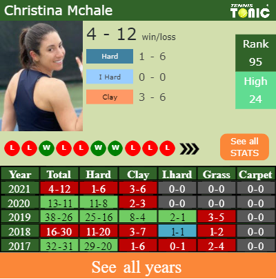 In terms of her career, Mchale has an overall 338-305 record. She has a positive 89-73 record on clay.