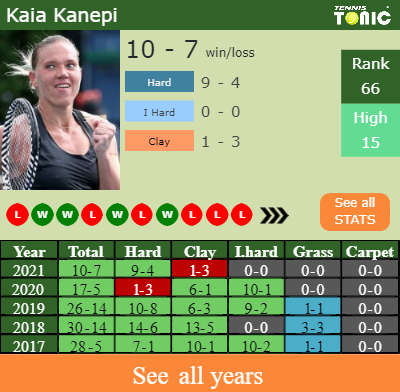 Kanepi has a composed 10-7 win-loss record in 2021, 1-3 on clay (See FULL STATS).