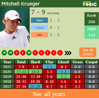 The American has an aggregate 7-9 win-loss record in 2021, 2-3 on hard (See FULL STATS).