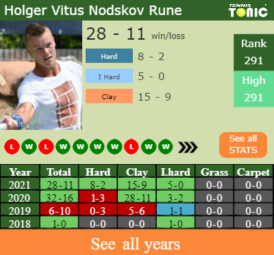 Holger has a composed 28-11 win-loss record in 2021, 15-9 on clay (See FULL STATS).