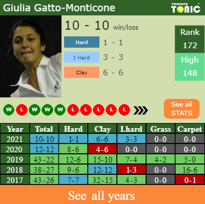 The pick for Tennis Tonic is Giulia Gatto-Monticone who should win in 3 sets.