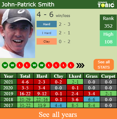 Smith has a compiled 4-6 win-loss record in 2021, 0-0 on grass (See FULL STATS).