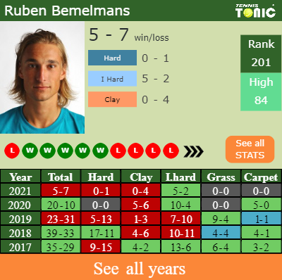 The Belgian has an aggregate 5-7 win-loss record in 2021, 0-0 on grass (See FULL STATS).