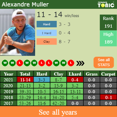 In terms of his career, Muller has an overall 263-159 record. He has a positive 159-94 record on clay.