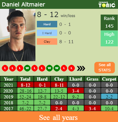 Talking about his overall career, Altmaier has an overall 255-146 record. He has a positive 105-75 record on clay.