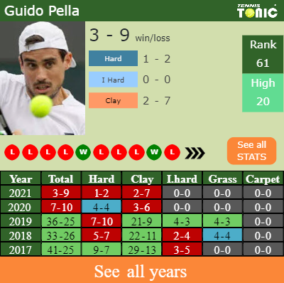 Talking about his overall career, Guido has an overall 488-319 record. He has a negative 10-13 record on grass.