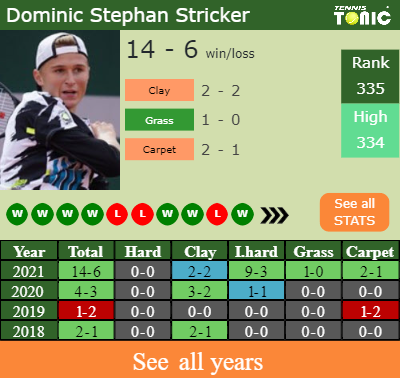 The Swiss has a compiled 14-6 win-loss record in 2021, 1-0 on grass (See FULL STATS).