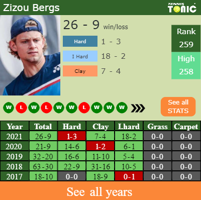 Zizou has an aggregate 26-9 win-loss record in 2021, 7-4 on clay (See FULL STATS).