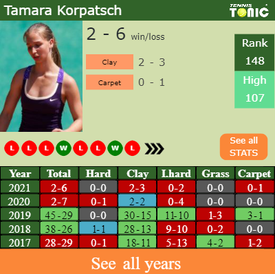 Talking about her overall career, Korpatsch has an overall 158-120 record. She has a negative 5-7 record on grass.