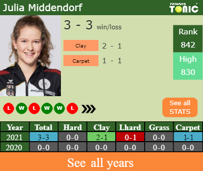 - Julia MiddendorfMiddendorf – Stefanie VoegeleVoegele (0-0) – H2H and prediction