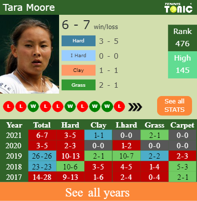 In terms of her career, Tara has an overall 305-252 record. She has a negative 35-42 record on grass.