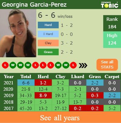 Talking about her overall career, Garcia-Perez has an overall 169-107 record. She has a negative 4-8 record on grass.