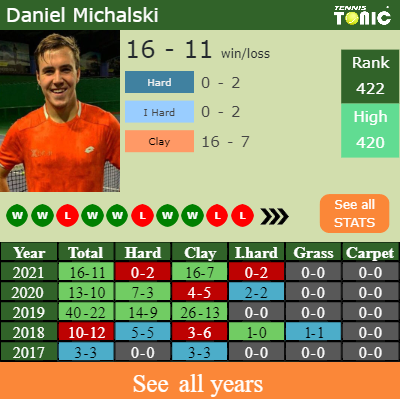 The Pole has an overall 16-11 win-loss record in 2021, 16-7 on clay (See FULL STATS).