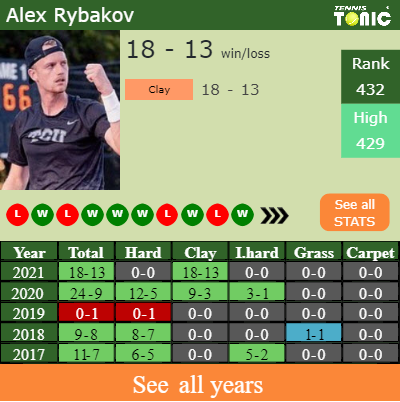 The American has a composed 18-13 win-loss record in 2021, 18-13 on clay (See FULL STATS).