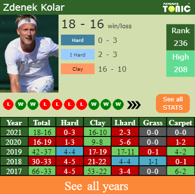 Zdenek has a compiled 18-16 win-loss record in 2021, 16-10 on clay (See FULL STATS).