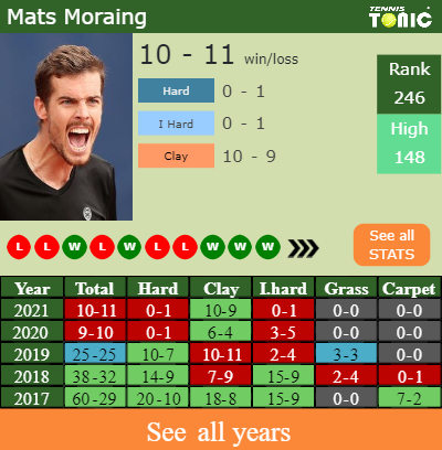 Moraing has an overall 10-11 win-loss record in 2021, 10-9 on clay (See FULL STATS).
