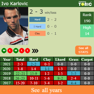 In terms of his career, The Croatian has an overall 497-404 record. He has a positive 97-52 record on grass.